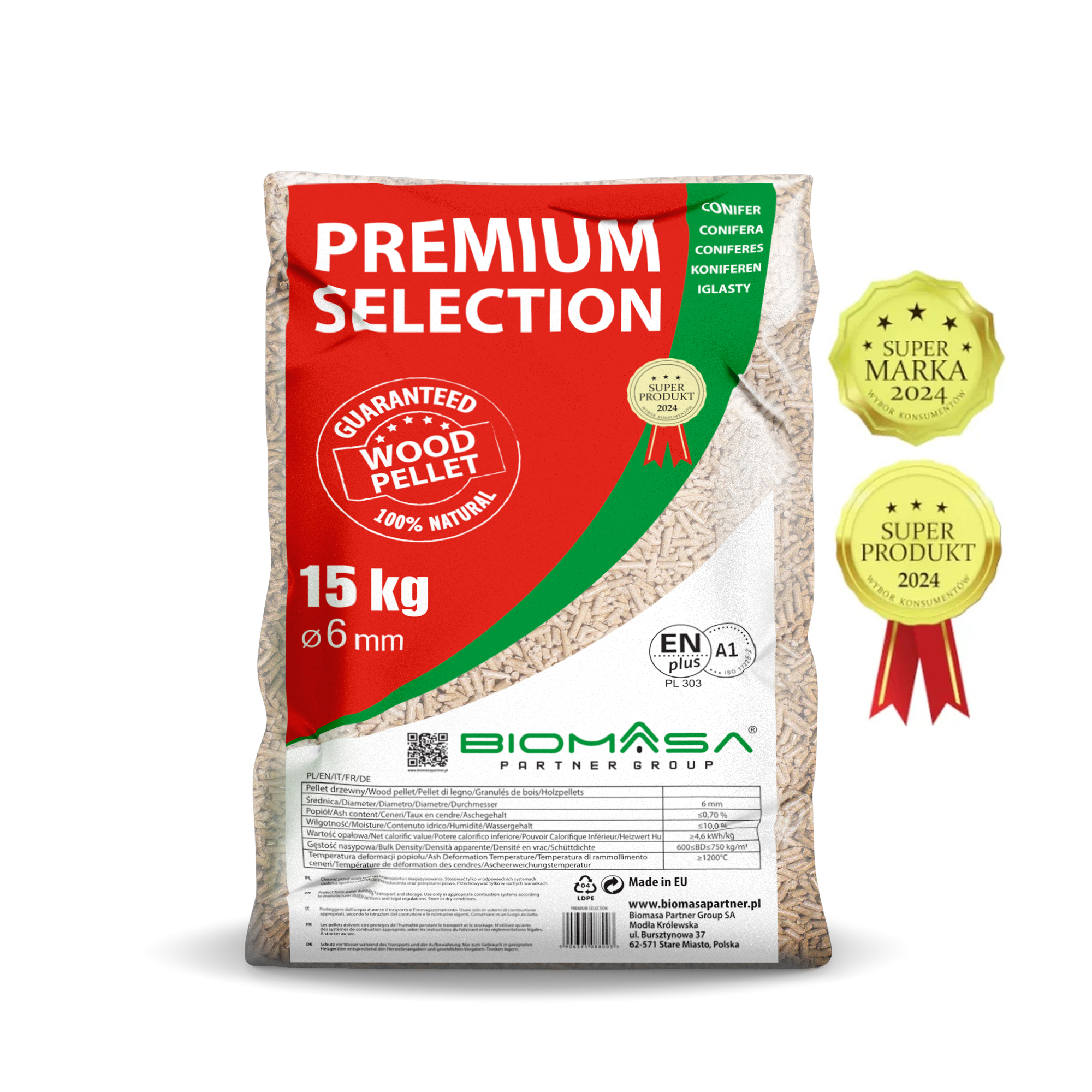 Pellet pakowany jest w worki 15 kg i układany na paletach po 65 szt.